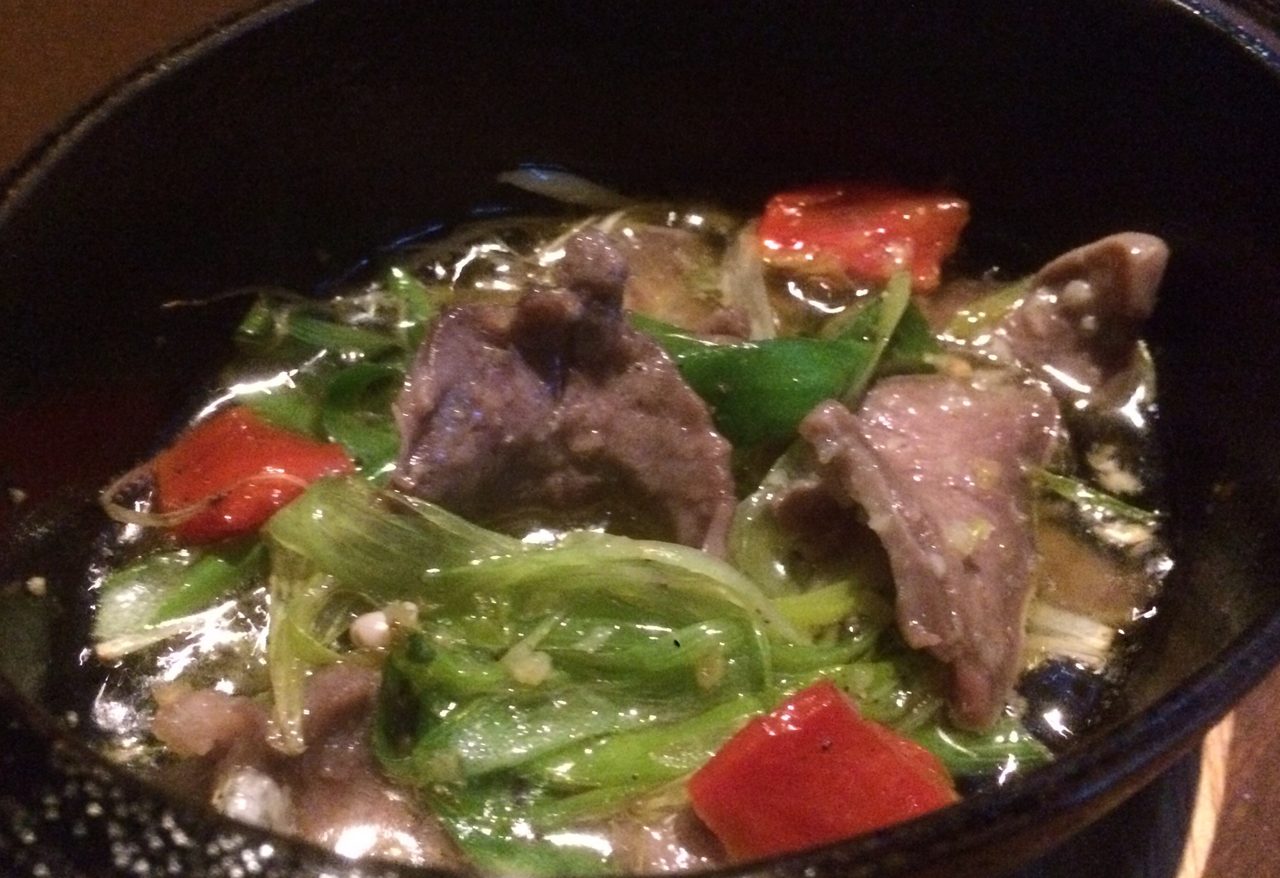 国産豚タンと九条ネギのアヒージョ